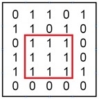 Input: The binary matrix. 0 1 1 0 1 1 1 0 1 0 0 1 1 1 0 1 1 1 1 1 0 0 0 0 0 Output: The largest submatrix with all 1’s.