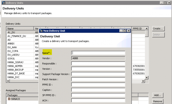 使用 HANA 應用程式生命週期管理在 SAP HANA 中建立一個交付單元
