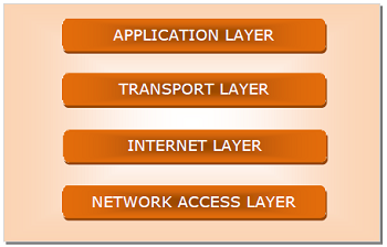 四層是應用層、傳輸層、網路層和網路接入層,如下圖所示 −