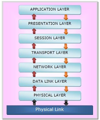 OSI 模型的七層是物理層、資料鏈路層、網路層、傳輸層、會話層、表示層和應用層。分層結構如下圖所示 −