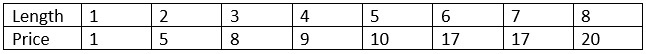 int priceList[] = {1, 5, 8, 9, 10, 17, 17, 20};