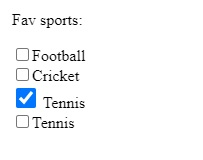 <input type = "checkbox" value = "Cricket">Cricket<br>