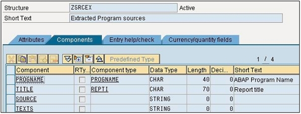如果您必須使用 RFC,可以編寫啟用 RFC 的函式模組。您可以編寫一個新的 FM,以便檢索程式原始碼。首先,您需要建立一個如下所示的結構,然後基於該結構建立一個表型別。此表可以傳遞給 RFC 函式。