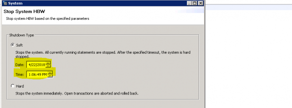 你也可以透過設定日期和時間來停止 HANA 系統,這屬於軟停止。