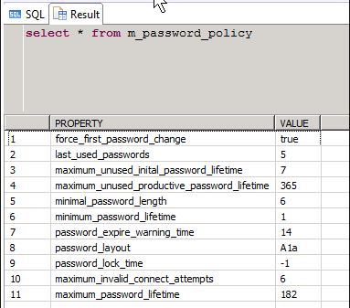 在 SAP HANA 中檢視 M_PASSWORD_POLICY 系統檢視中的資訊