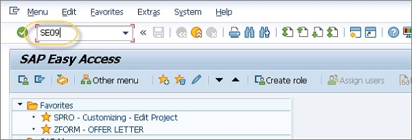 下一步是建立傳輸請求以傳輸文字。這可以透過使用 T 程式碼:SE09 來完成。轉到主螢幕並執行 T 程式碼 SE09。