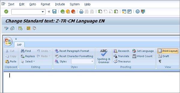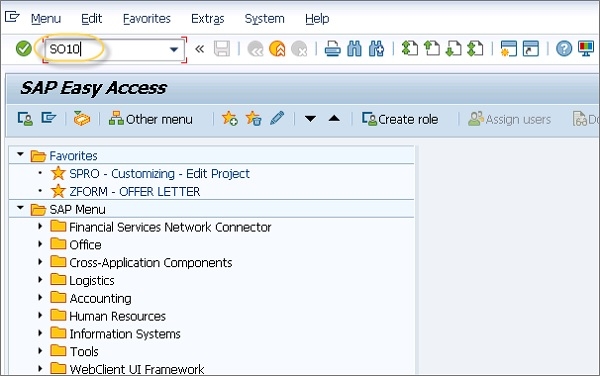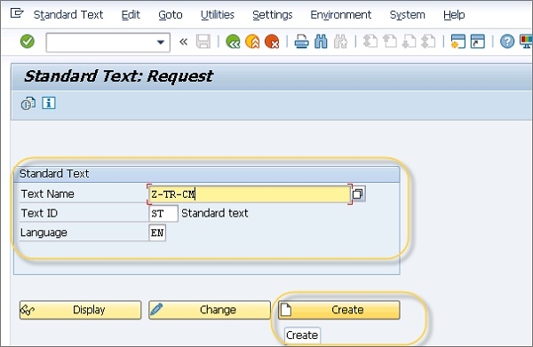 要建立標準文字,您必須使用 T 程式碼 SO10。
