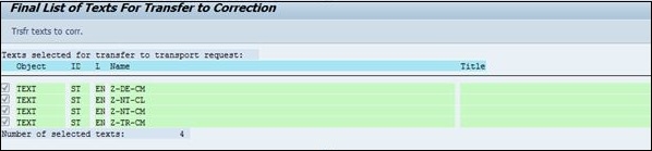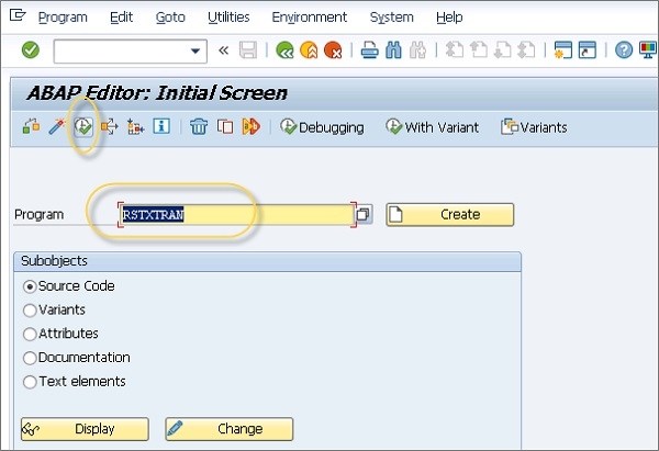 下一步是將文字包含在此傳輸請求中。為此,請執行 T 程式碼 SE38 並執行程式 RSTXTRAN -> 執行。