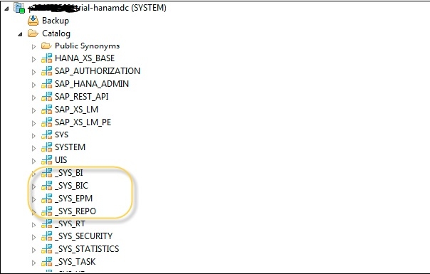 _SYS_BIC − 只要你啟用任一 HANA 建模檢視,它就會儲存在 _SYS_BIC 系統定義模式下。