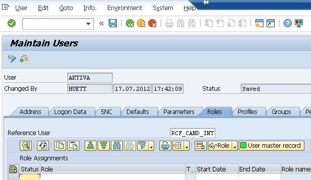 要將此物件分配給使用者,請使用 T-Code:SU01