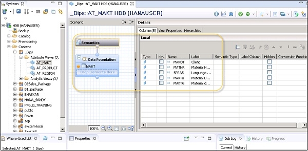 在 SAP HANA 建模中,屬性檢視是構建在維度表之上的。它們用於連線維度表或其他屬性檢視。還可以從其他程式包內已有的屬性檢視中建立現有屬性檢視的副本,但在這種情況下無法編輯該檢視。以下是屬性檢視的主要特徵