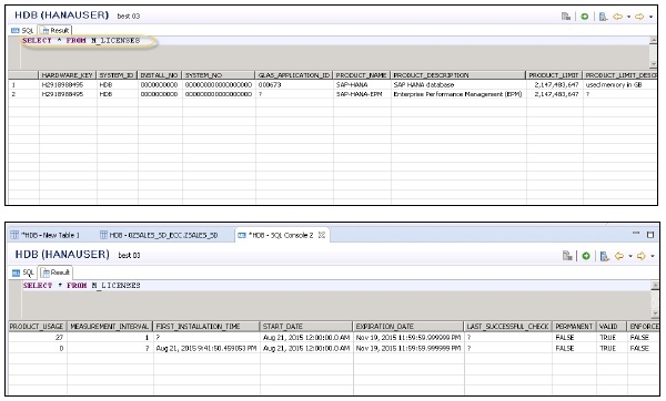 SAP HANA 中 M_LICENSES 系統檢視中可用的詳細資訊