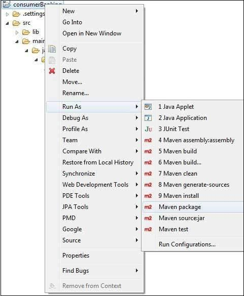 右鍵單擊 consumerBanking 專案以開啟上下文選單。