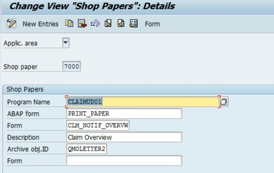 接下來,將車間檔案分配給“通知型別”。這樣可指定您關心的 4 字元的車間檔案程式碼,並定義車間檔案以包含 ABAP 報表和列印程式。