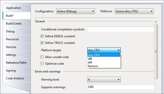 另一個方案是導航到專案/屬性 → 將平臺目標從 “任何” 設定為 “x86”。