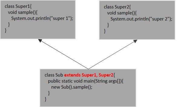 例如,如果有 Sub 類的兩個父類 Super1 和 Super2,並且這兩個類都包含 sample() 方法。