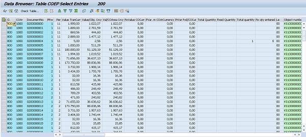 所有訂單,無論它們是內部訂單還是工作訂單,都連結到一個特定的成本中心。因此,每個訂單將擁有一個成本中心,為了找到它關聯到的成本中心,你可以參考以下表:管控的 COEP 或 COEJ。你可以找到有關成本中心、訂單和其他內容在一段期間或一年的詳細資訊。