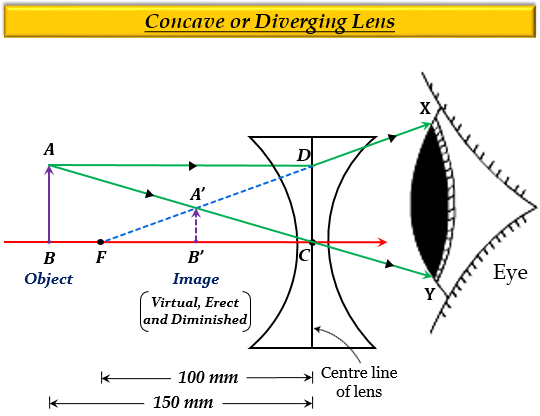 (ii) 使用透鏡公式計算像到透鏡的距離。(b) 將(a)部分中的凹透鏡替換為焦距也為100 mm的凸透鏡。物體保持在相同位置,並由凸透鏡成像。比較此像與(a)部分凹透鏡所成像的兩個特性。