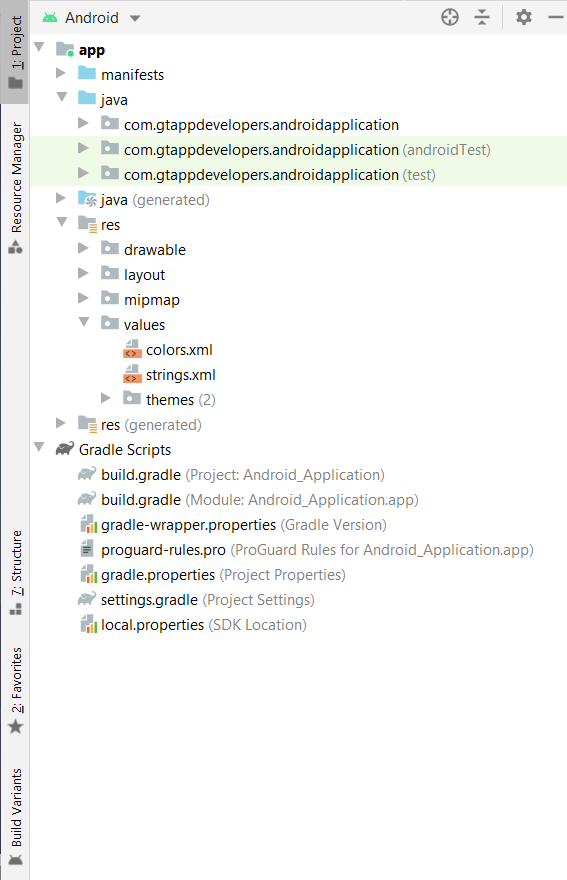 建立 Android Studio 專案後,您將在左側窗格中看到 Android Studio 專案的完整檔案結構。現在我們將逐一檢視它們。