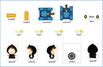 步驟 1 − 宣告變數併為玩家(突擊隊員)、盾牌、鑰匙、門、牆壁、坦克(敵方士兵)建立精靈,並設定動畫。