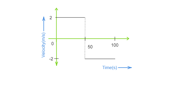 在給定的距離-時間圖中,對稱性表明女孩以相同的速度(2 m/s)但方向相反回到了她的初始位置。因此,速度-時間圖如下所示