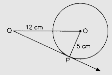 半徑為 5 釐米的圓上一點 P 的切線 PQ 與過圓心 O 的一條直線交於點 Q,使得 OQ = 12 釐米。