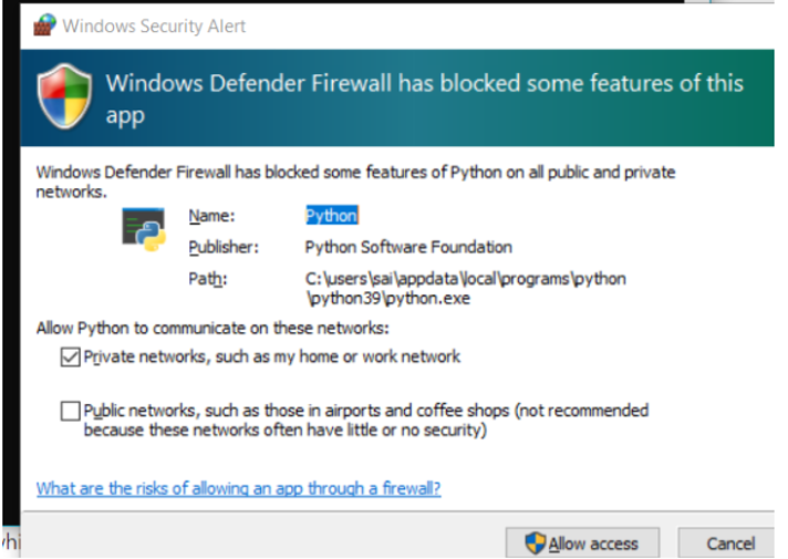 執行上述命令後,螢幕上將出現一個許可權視窗,要求您允許訪問該裝置。點選“允許訪問”以啟動伺服器。伺服器將在埠 8000 上啟動。您可以為伺服器使用任何有效的埠。