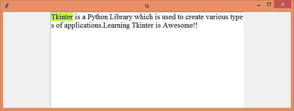 text.insert(INSERT, "Tkinter is a Python Library which is used to create various types of applications.")