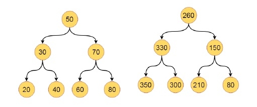 在此,我們將看到一個有趣的問題,其中我們將向給定的二叉搜尋樹中的每個節點新增較大的值。因此,初始樹和最終樹如下圖所示: