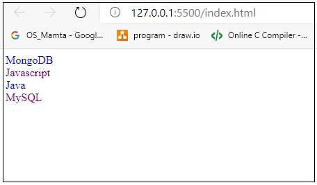 </html>要執行以上程式,請儲存檔名稱 anyName.html(index.html),然後右鍵單擊該檔案,並在 VS 程式碼編輯器中選擇使用即時伺服器開啟的選項。