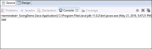 在上面按確定後,結果將顯示在控制檯中,它是上面新增的所有數字的總和 -