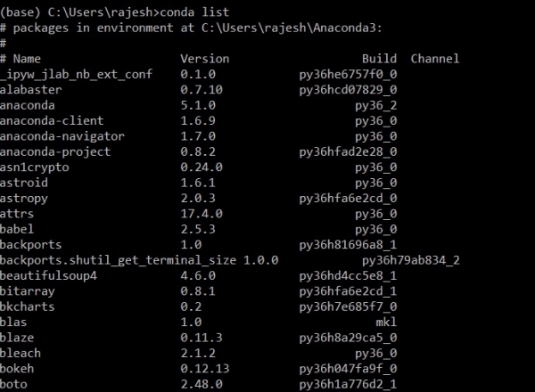 我們可以使用 Anaconda Prompt 列出活動環境中的所有包: