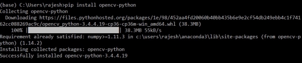 以上命令會將 OpenCV 包安裝到您的當前環境中。