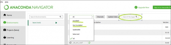 方法 3 − 如果我們的 conda 環境或 Anaconda Navigator 中沒有該包,我們可以使用其他包管理器(如 pip)查詢並安裝該包。