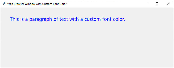 執行應用程式後,您將看到一個 Tkinter 視窗,其中顯示了指定字型顏色和樣式的文字段落。