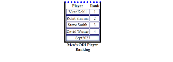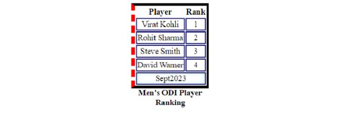 <caption>Men's ODI Player Ranking</caption>