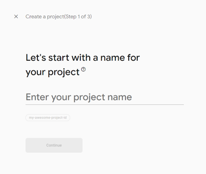 在此螢幕中,指定專案名稱,然後單擊“繼續”。您將看到以下螢幕。