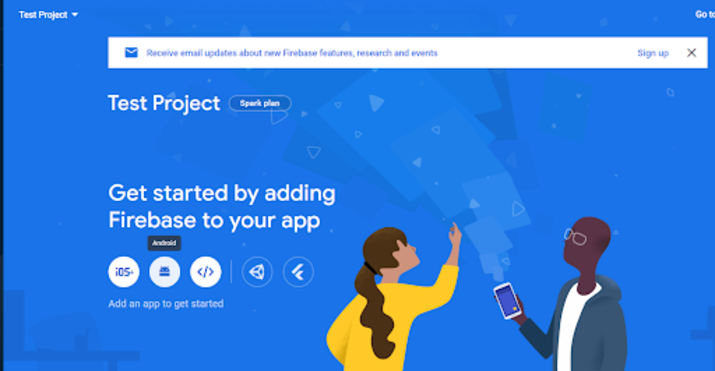 在此螢幕中,單擊“Android”以將您的 Android 應用程式新增到 Firebase。您將看到以下螢幕。