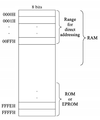 在 M6800 中,經常訪問的資料儲存在記憶體範圍 0000H 到 00FFH 中。因此,為了快速訪問這些位置的資料,RAM 通常從 0000H 開始。並且使用 ROM 或 EPROM 提供記憶體的最後部分,該部分以 FFFFH 結尾。