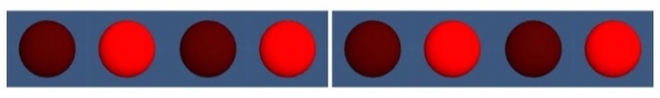 在 OUT 指令的情況下,累加器的當前 8 位內容將複製到 PORT#。假設累加器的初始內容為 0101 0101。並且 8 位埠連線了 8 個 LED。因此,在執行指令 OUT PORT# 後,LED 將具有如下所示的狀態:
