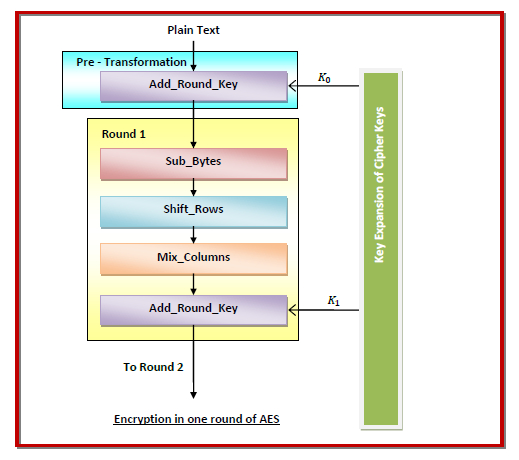 下圖顯示了 AES 演算法第 1 輪中的子過程