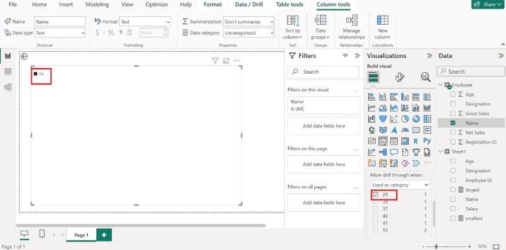 因此,年齡採用分類形式。我們可以根據年齡選擇員工。例如,如果我們點選 29,則將填充特定員工“Tia”(此年齡)的姓名。