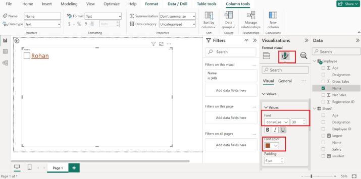 讓我們點選 41 歲,則員工“Rohan”的姓名將出現在切片器視覺效果中: