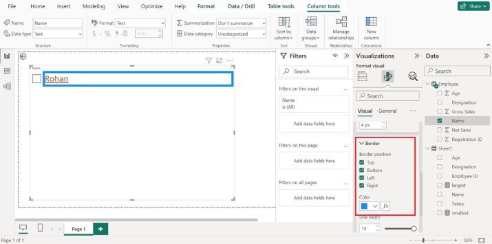 我們還可以更改切片器的邊框。在邊框部分下,點選頂部、底部、左側和右側複選框。選擇所需的背景顏色。