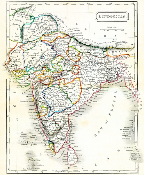描述 - 印度分治前地圖顯示了印度獨立前的印度地圖,包括土邦、印度省份和其他鄰國。