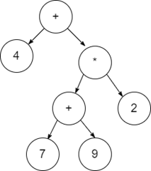 4 + ((7 + 9) * 2) 的表示式樹如下所示