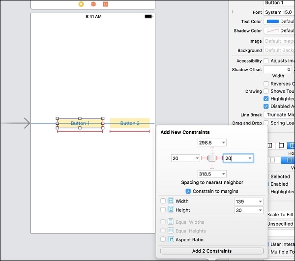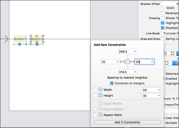 就是這樣,當您點選“新增 2 個約束”時,您將看到您的按鈕垂直對齊。