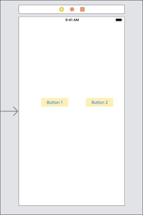 步驟 2:開啟 Main.storyboard 並新增兩個按鈕,分別命名為按鈕 1 和按鈕 2。