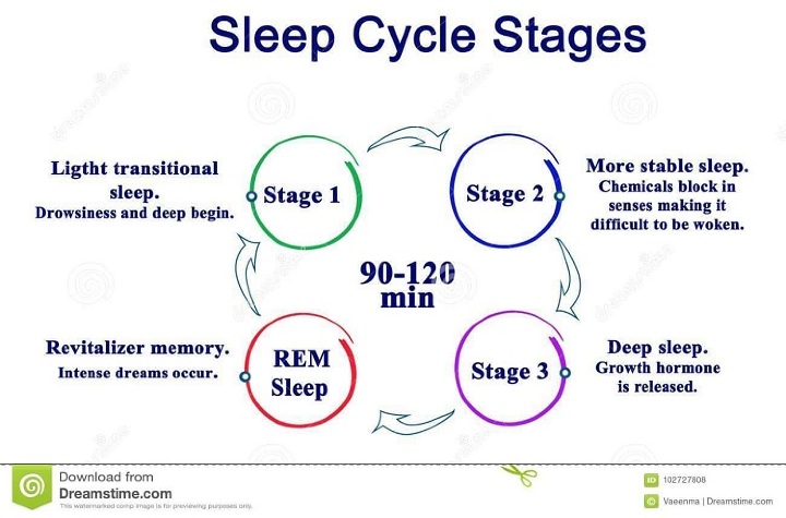 一夜之間,你的大腦會經歷一系列的睡眠階段。克萊恩建議,對於七到八小時的睡眠,你應該經歷四到六個睡眠週期。第一次迴圈,你會依次經歷每個階段。醒來後,你無法回到第一階段。如果你幸運的話,REM睡眠(第二和第三階段)會在非REM睡眠之後出現。