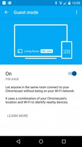 您不再需要分享您的 Wi-Fi 密碼來讓訪客訪問裝置。開啟訪客模式,當您的訪客在支援 Chromecast 的應用中開啟時,他們的應用中將顯示“投屏”圖示。點選“投屏”圖示後,將“附近裝置”列為可用選項。如果此選項失敗,使用者可以手動將電視上顯示的四位數 PIN 碼輸入到裝置上的應用設定中。